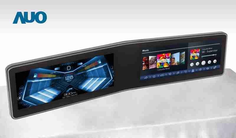 巨星国际 V 型曲面驾驶舱显示器,,,,采全贴合拼接仪表板及中控台显示屏 |